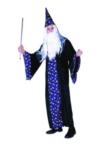 Cast some black magic as a powerful sorcerer in our Black Mage Wizard Adult Costume. With more than a few tricks up his sleeve, this magician is ready to cast some black magic this Halloween! Our men's Black Mage Wizard Costume includes a full length black robe accented with blue galaxy pattern and topped with a matching pointed wizard's hat. The galaxy pattern features moon, sun and star print and trims the draping sleeves cuffs and length of the robe. Council King Arthur as Merlin or become your own fairytale sorcerer legend in our Black Mage Wizard Costume for men. Wig, beard, wand, shoes not included.Available at Amazon >>Check Price Now!<<
